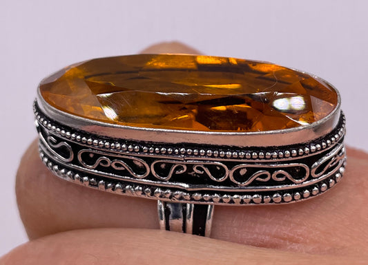 Vintage Yellow Vintage Art Glass Cocktail Ring Size 7