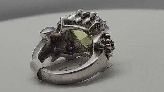 Vintage Yellow Quartz and Amethyst Ring in 925 Sterling Silver with 14k Accent and White Sapphires