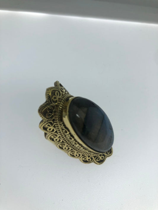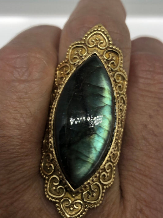 Vintsge Large Rainbow Labradorite Stone Brass Ring