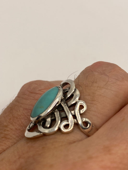 Vintage Turquoise Gemstone 925 Sterling Silver Celtic Ring