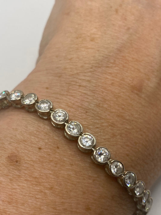 Vintage Crystal White Sapphire 925 Sterling Silver Tennis Bracelet