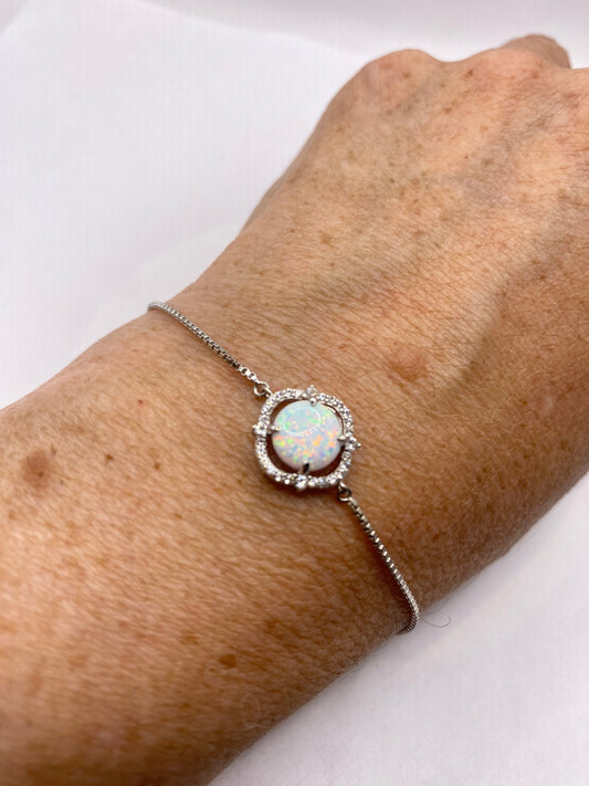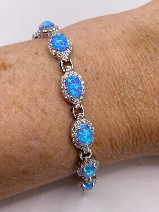 Vintage Blue Fire Opal Cubic Zirconia Bracelet 925 Sterling Silver