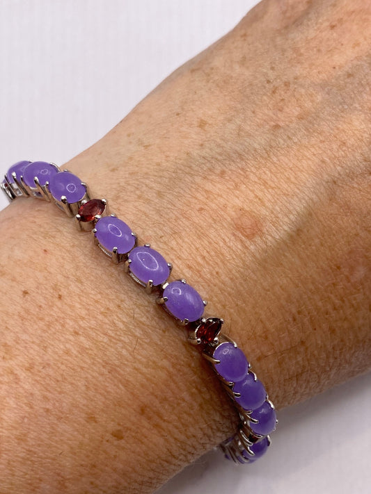 Vintage Purple Jade Garnet Tennis Bracelet in 925 Sterling Silver