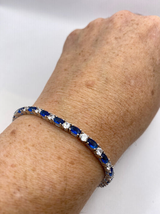 Vintage Blue Iolite Heart 925 Sterling Silver Tennis Bracelet