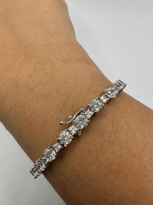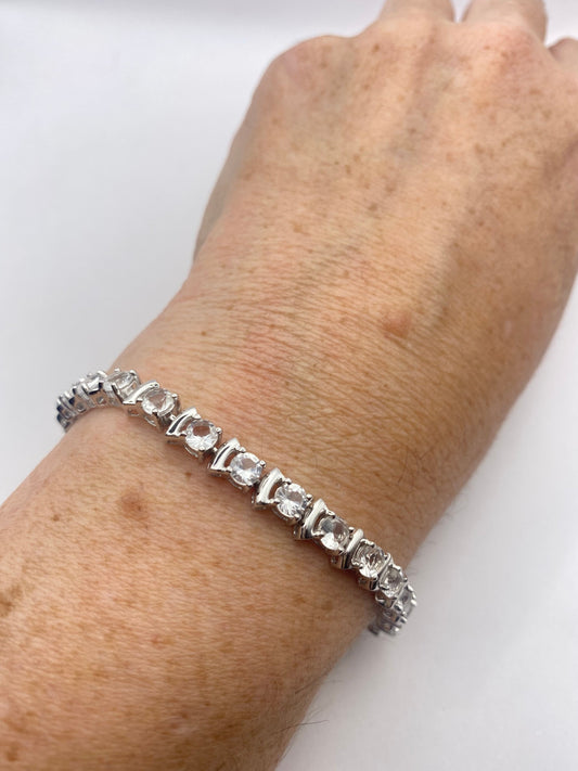 Vintage White Sapphires 925 Sterling Silver Tennis Bracelet