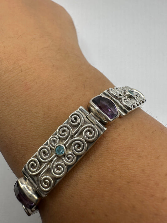 Vintage Blue Topaz 925 Sterling Silver Statement Bracelet