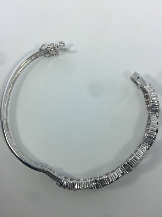 Genuine Garnet and White Sapphire Gemstone 925 Sterling Silver Vintage Bangle Bracelet