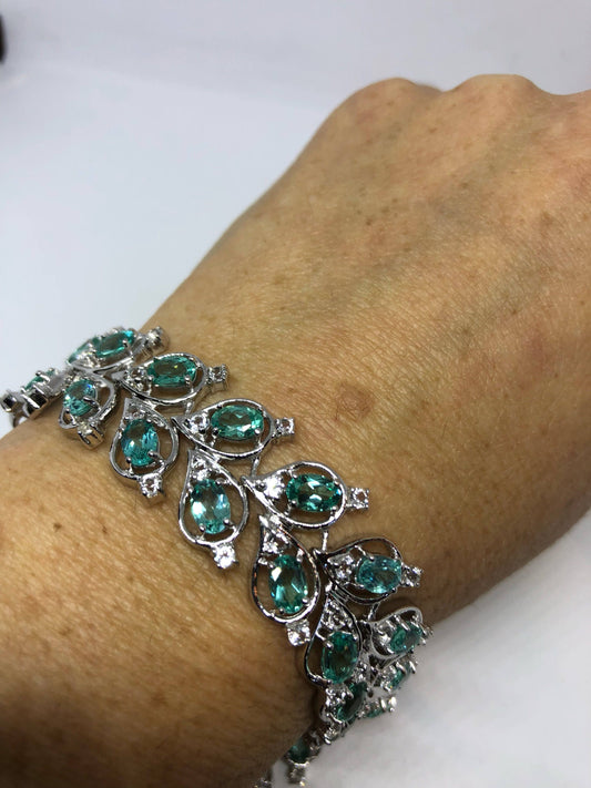 Vintage Handmade Genuine Green Flourite 925 Sterling Silver Tennis Bracelet
