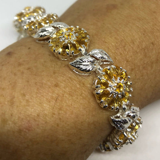 Vintage Gold Citrine Tennis Bracelet in 925 Sterling Silver