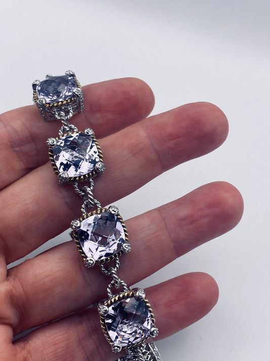 Vintage Purple Amethyst Statement Bracelet 925 Sterling Silver Purple Deco
