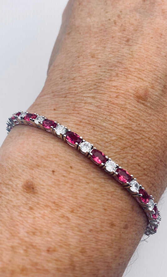 Vintage Red Tourmaline Tennis Bracelet in 925 Sterling Silver 7.5 Inch