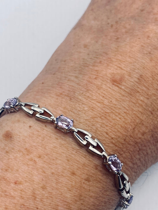 Vintage Amethyst Bracelet 925 Sterling Silver Purple Deco