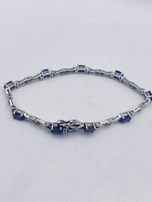 Vintage Blue Iolite 925 Sterling Silver Tennis Bracelet