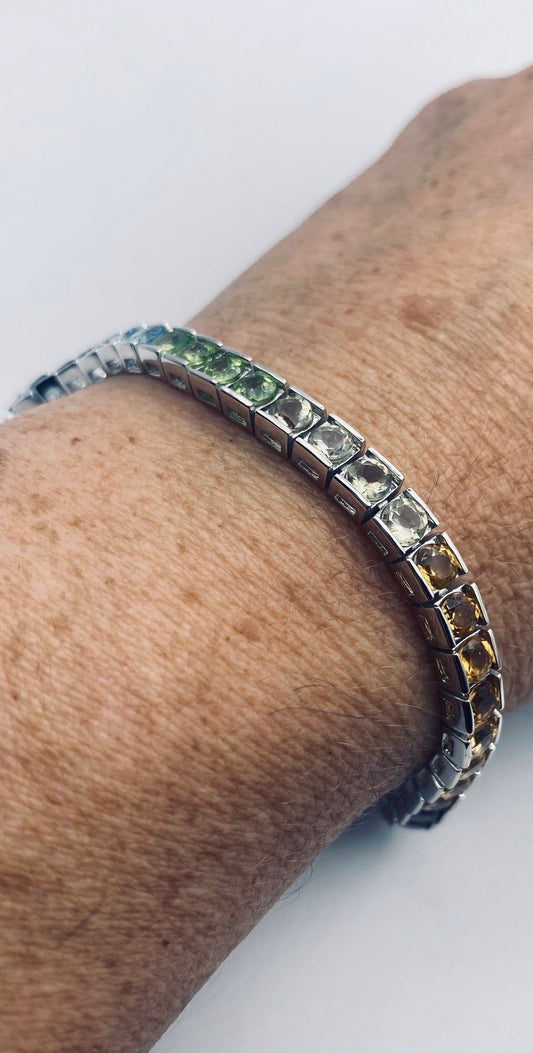 Vintage Mixed Gemstone 925 Sterling Silver Tennis Bracelet