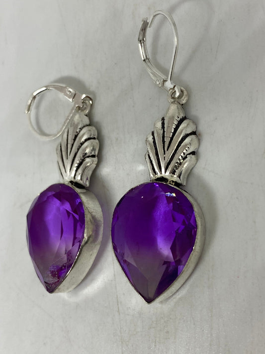 Antique Vintage Purple Volcanic Glass Silver Dangle Earrings