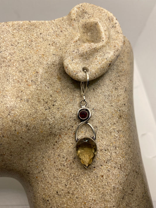 Vintage Genuine Citrine Gemstone 925 Sterling Silver Drop Earrings