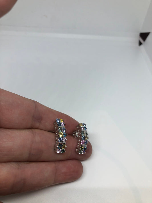 Vintage Genuine Gemstone 925 Sterling Silver Earrings