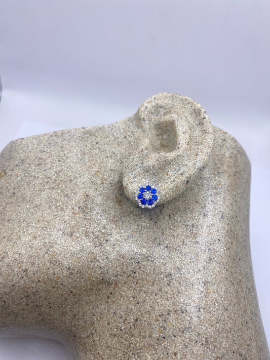Vintage Blue Iolite Earrings 925 Sterling Silver Stud Button