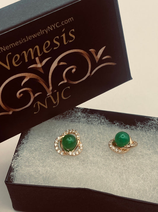 Vintage Fun Green Jade Gemstone Gold Rhodium Bronze Earrings