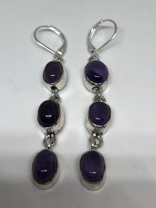 Vintage Sterling Silver Purple Amethyst Lever Back Earrings