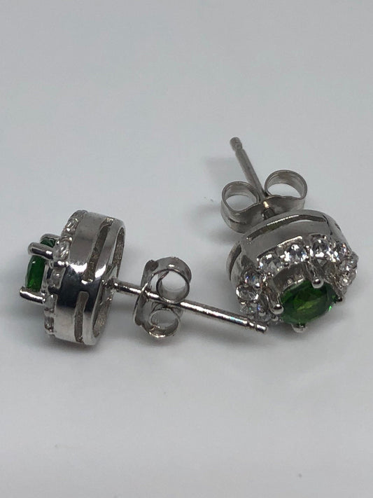 Vintage Green 925 Sterling Silver Green Chrome Diopside post button Earrings