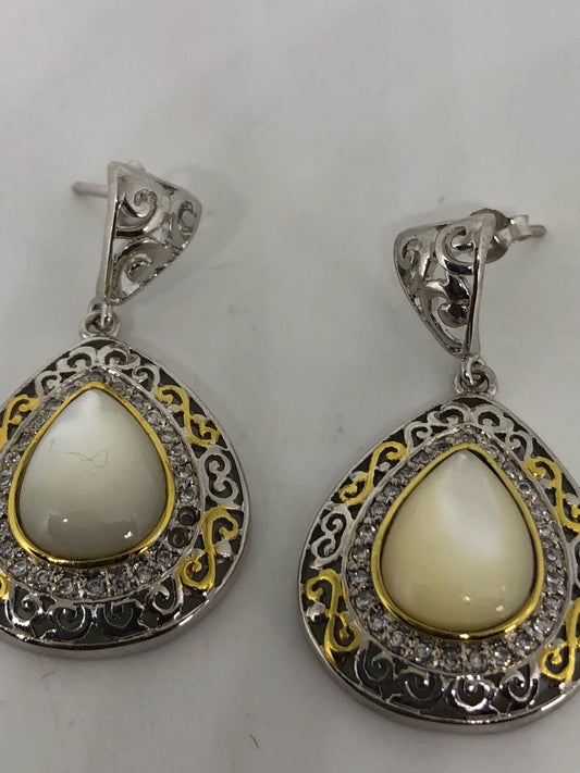 Vintage Mother of Pearl 925 Sterling Silver Dangle Chadelier Earrings