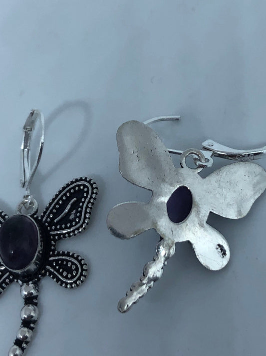Vintage Purple Amethyst Lever Back Earrings 925 Sterling Silver Chandelier Dragonfly