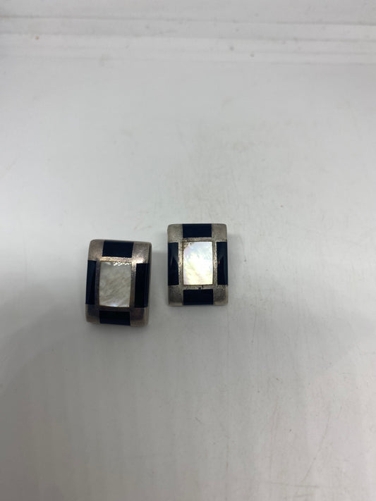 Vintage Earrings 925 Sterling Silver Deco Black Onyx Mother of Pearl