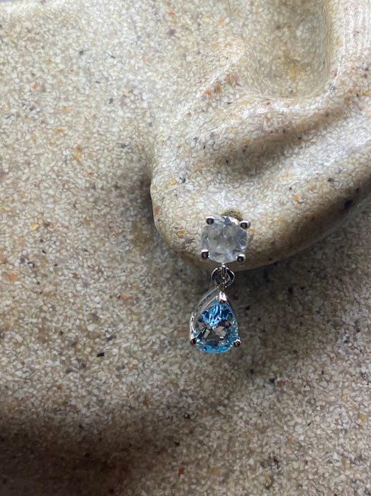 Vintage Blue Topaz White Sapphire 925 Sterling Silver Drop Earrings