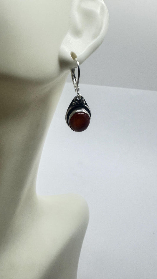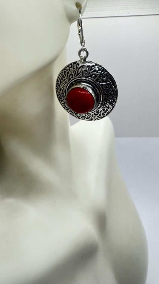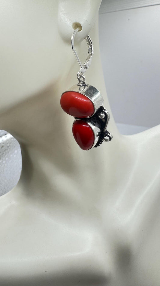 Vintage Red Coral Earrings 925 Sterling Silver Leverback