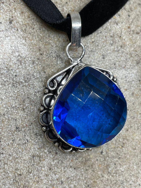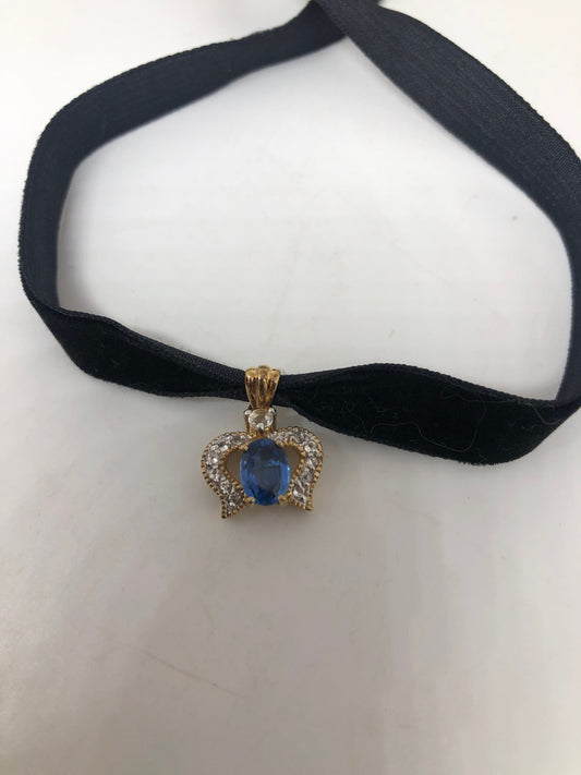 Vintage Blue Glass Antique Velvet Choker Necklace