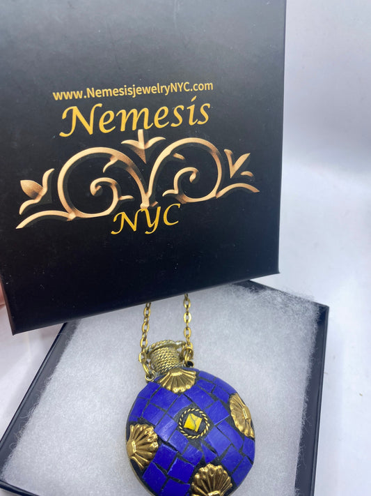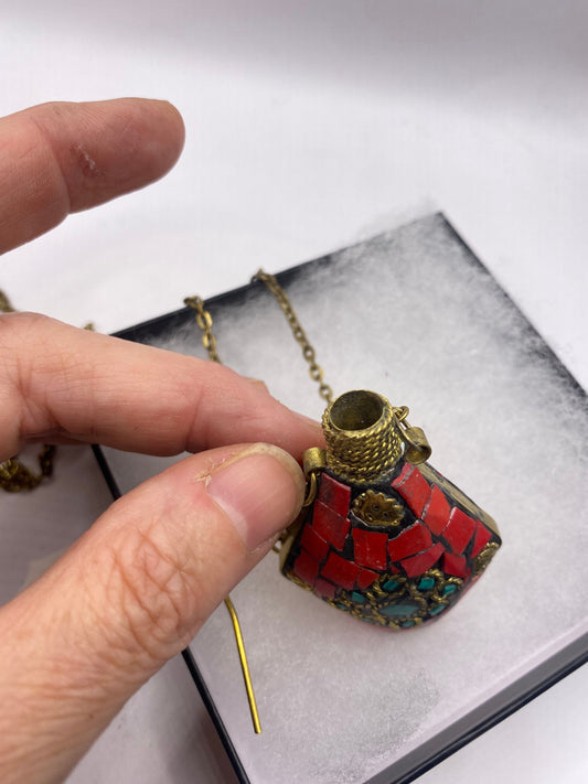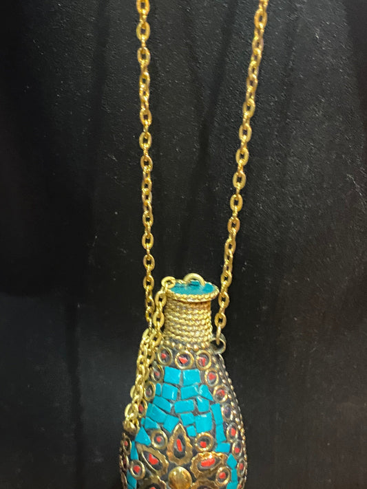 Vintage Perfume Oil Bottle mosaic Inlay Gemstone Pendant Necklace