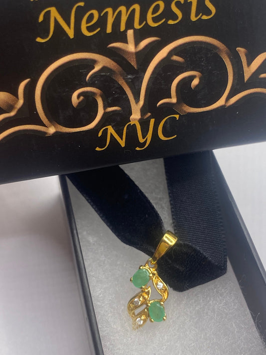 Vintage Green Emerald Choker Necklace Golden 925 Sterling Pendant