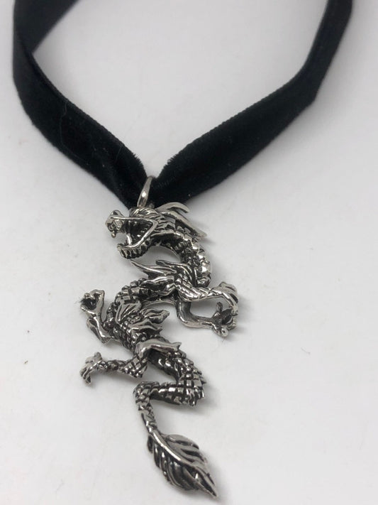Vintage Handmade Sterling Silver 925 Gothic Dragon Necklace