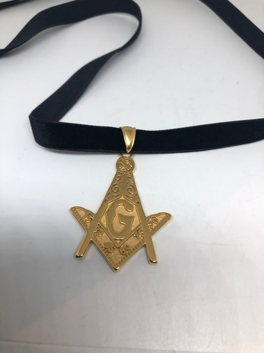 Vintage Golden Stainless Steel Free Mason Pendant Necklace