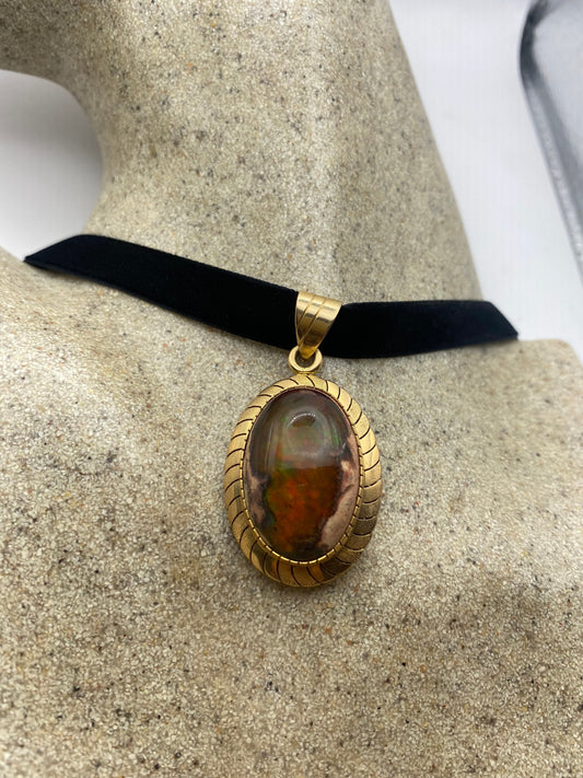 Vintage Orange Fire Opal 14k gold Choker Necklace