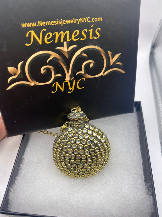 Vintage Perfume Oil Bottle Mosaic Inlay Rhinestone Pendant Necklace
