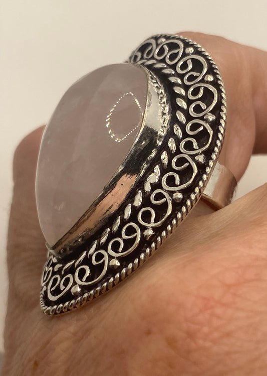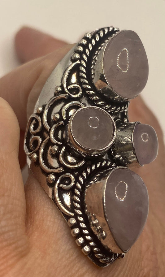 Vintage Handmade Raw Pink Ruby Silver Gothic Ring