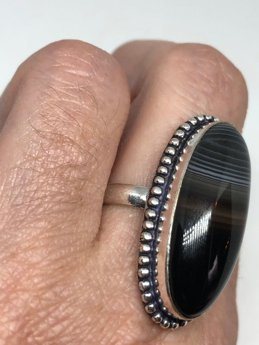 Vintage Handmade Black and White agate White Bronze Silver Gothic Ring