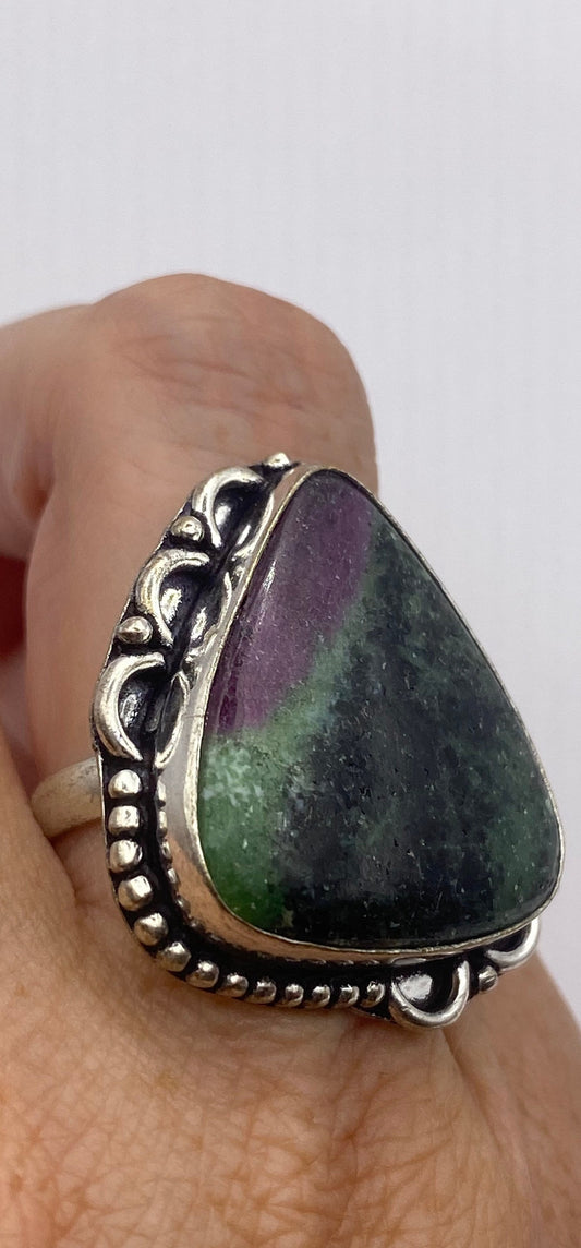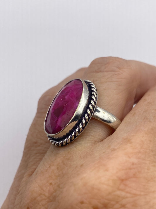 Vintage Handmade Raw Pink Ruby Zoisite Silver Gothic Ring