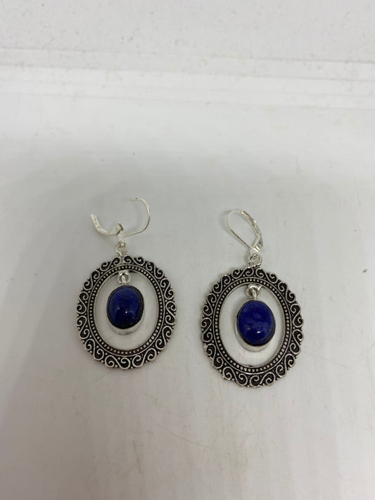 Vintage Blue Lapis Lazuli Earrings Silver Dangle