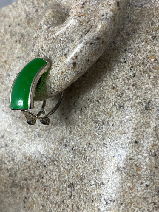 Vintage Green Jade Gemstone Sterling Silver Heart Earrings