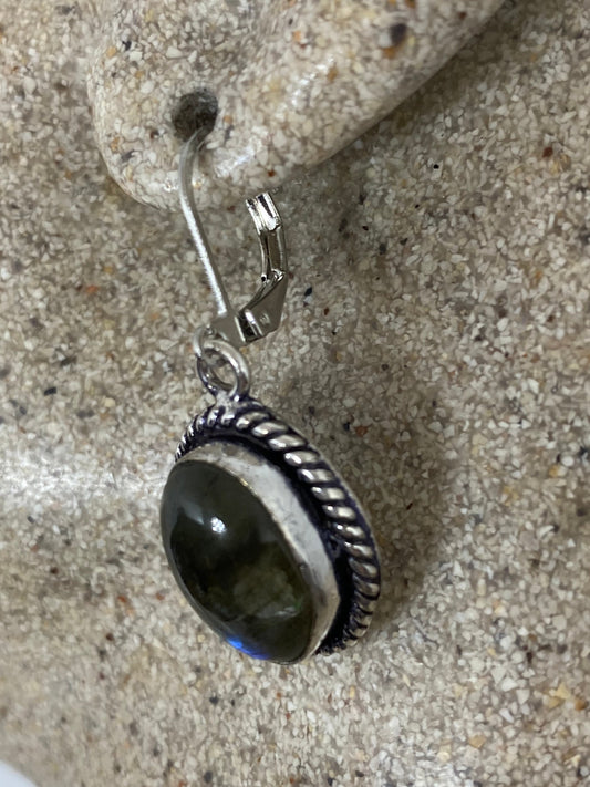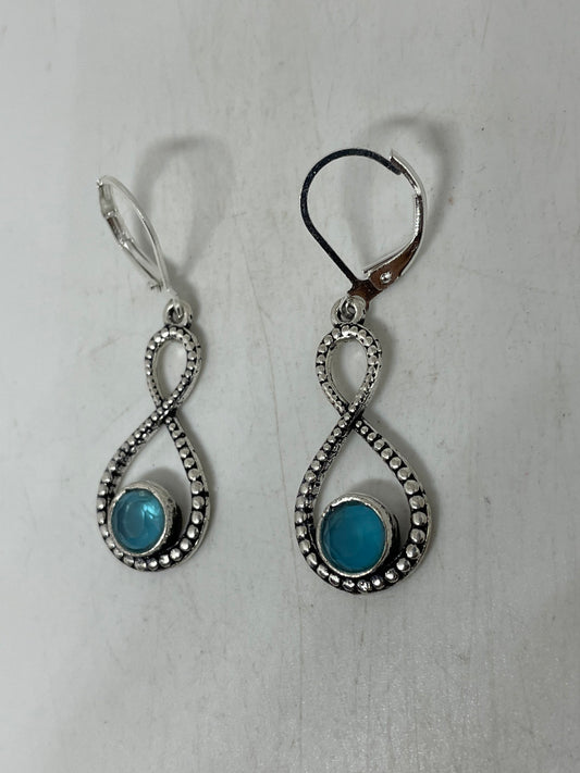 Vintage Blue Chalcedony Earrings Silver Dangle