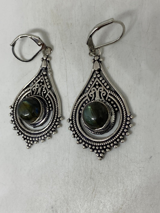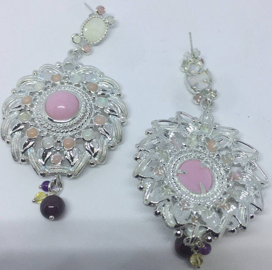 Antique Vintage Pink White Opal 925 Sterling Silver Dangle Chandelier Earrings