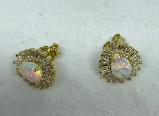Vintage Fire Opal Earrings 925 Sterling Golden Stud Button