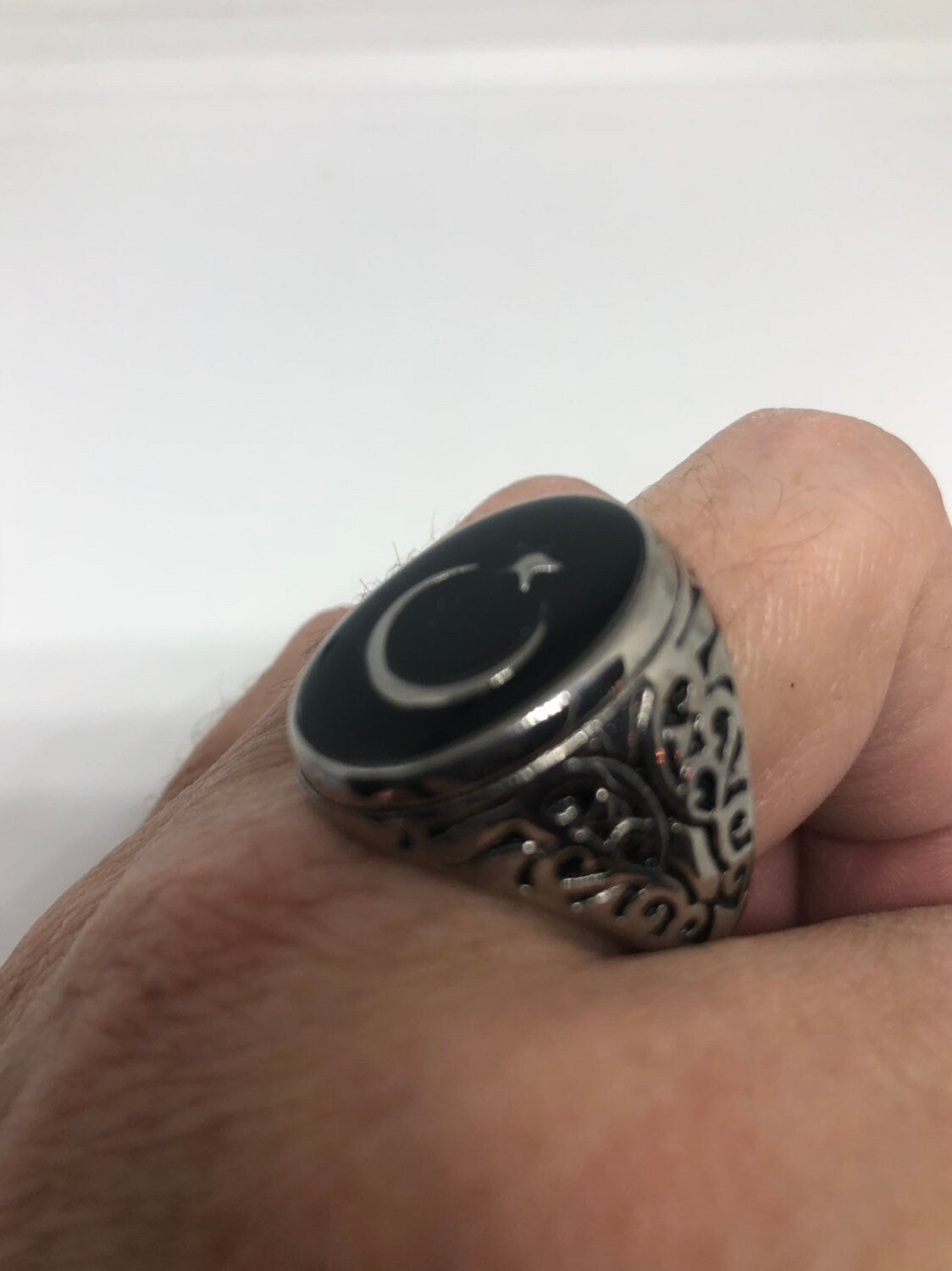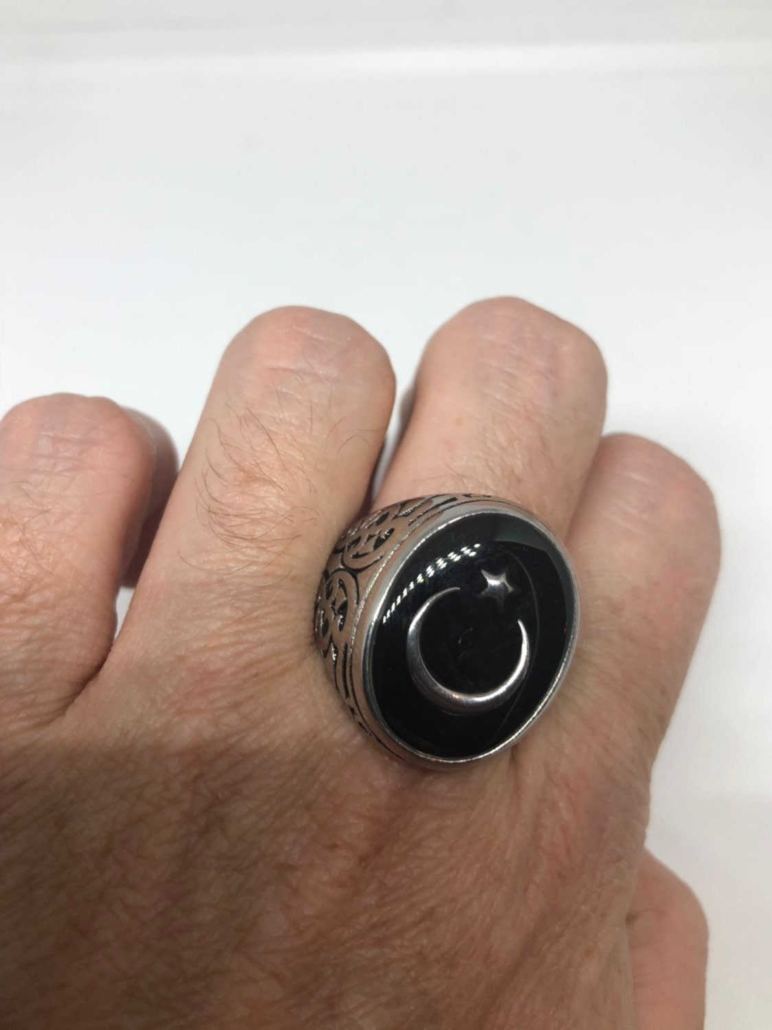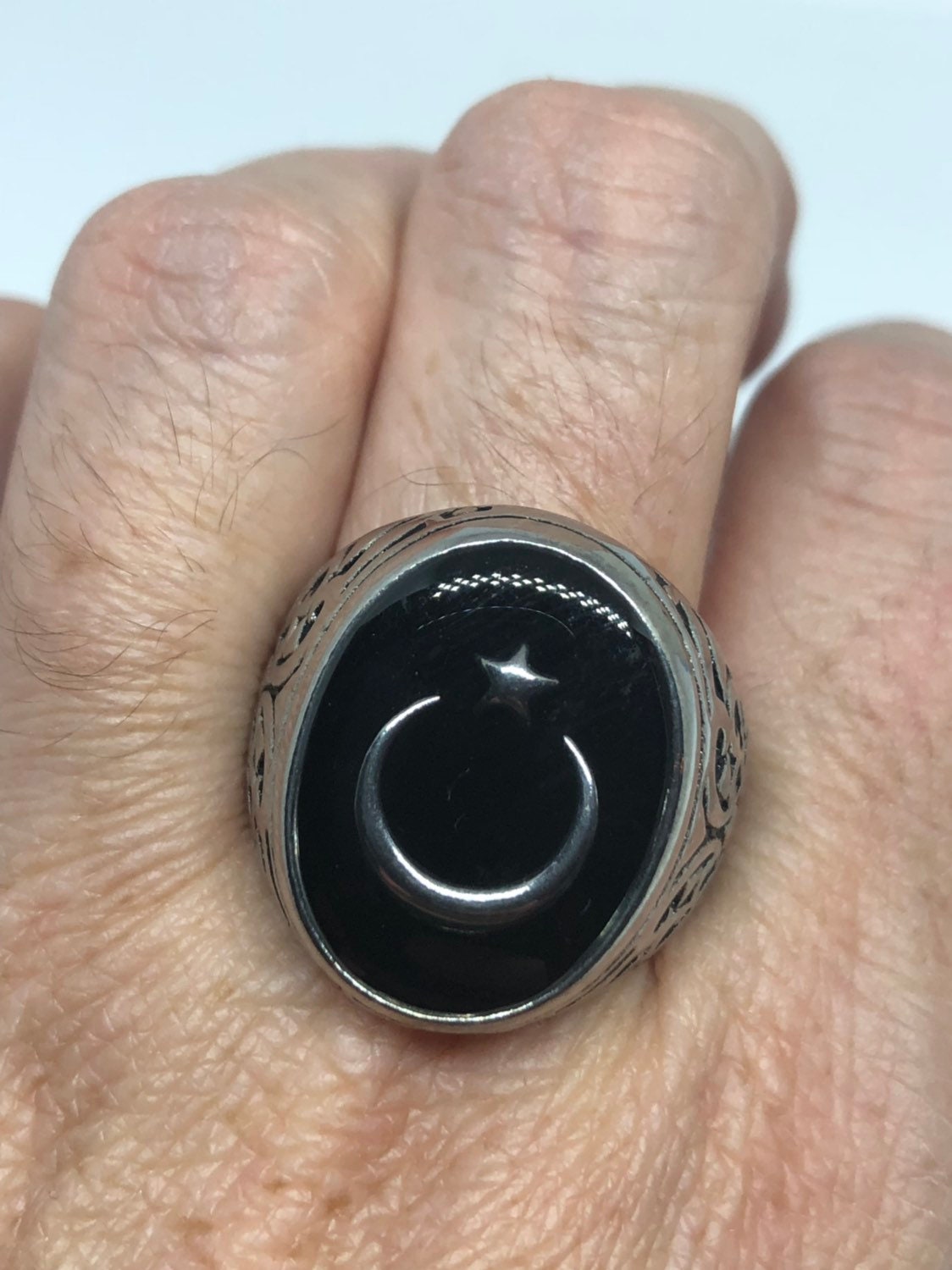 Vintage Gothic Silver Stainless Steel Muslim Star Cresant Mens Ring