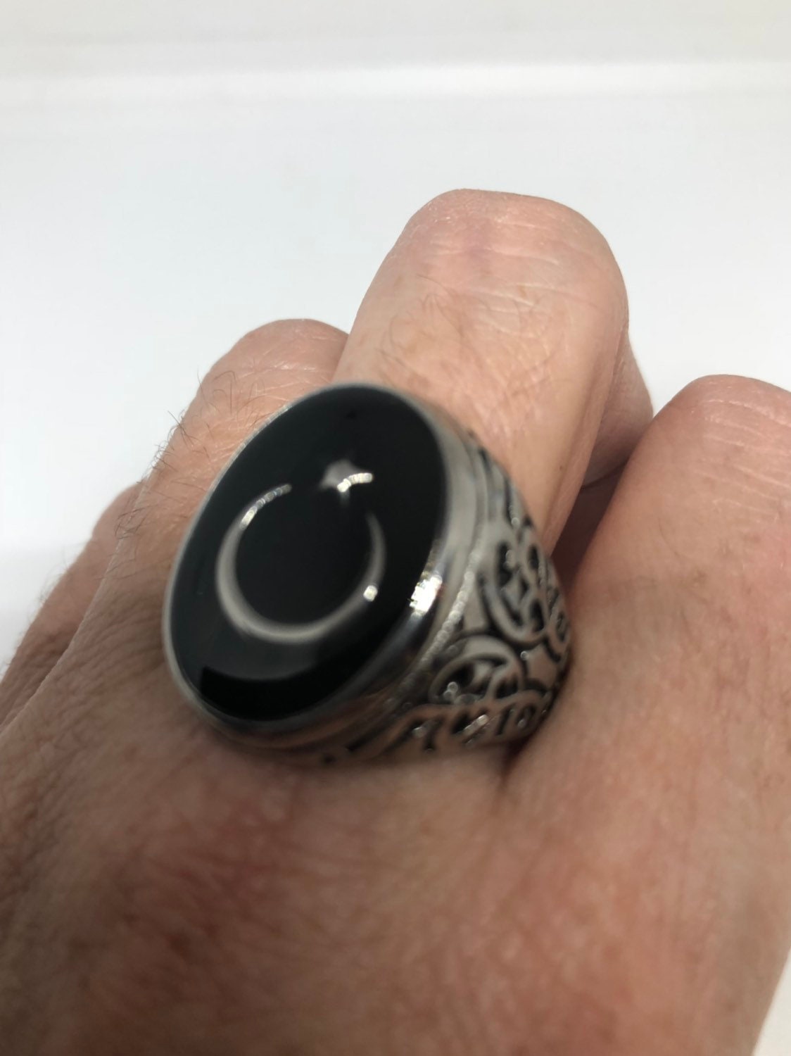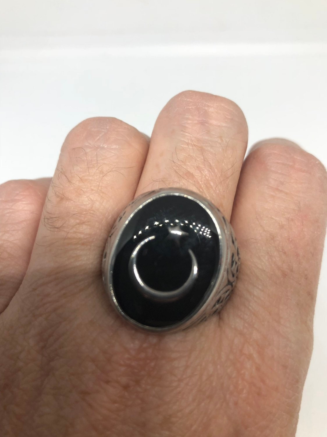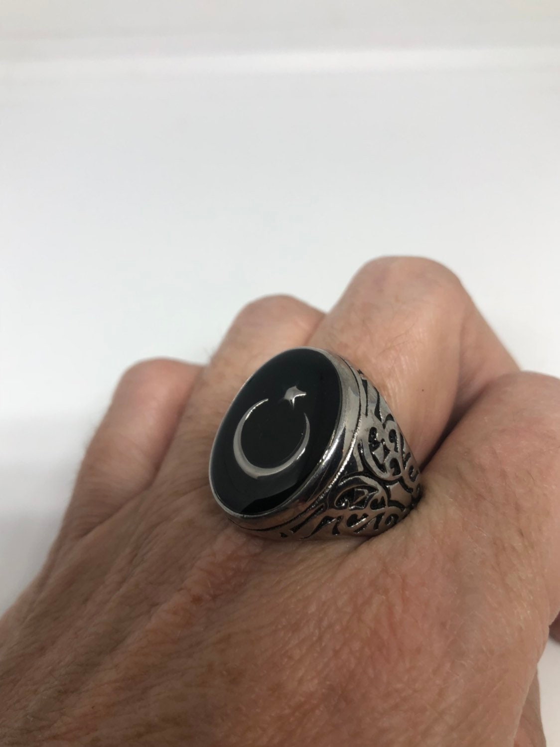 Vintage Gothic Silver Stainless Steel Muslim Star Cresant Mens Ring