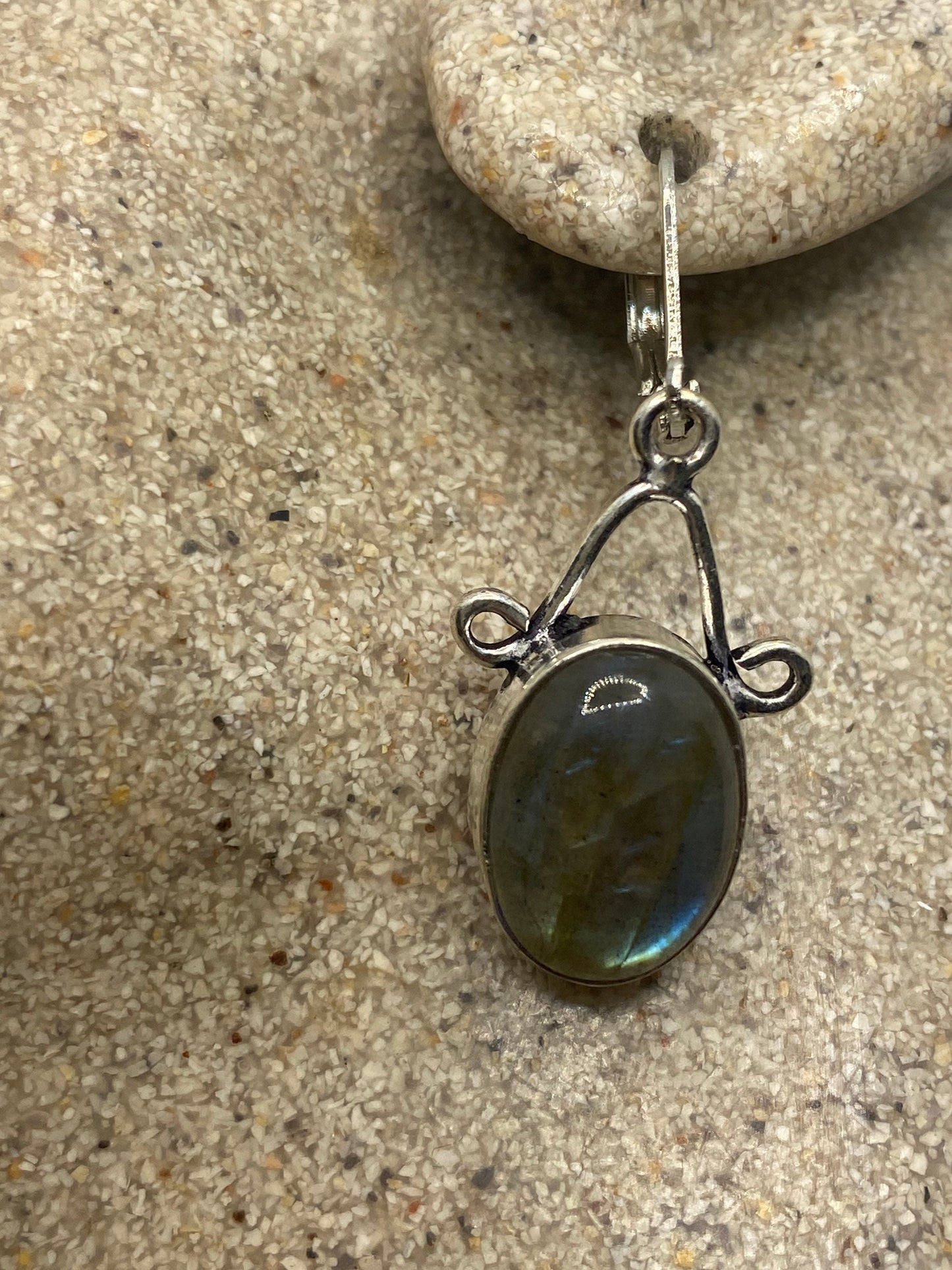 Delicate and detailed green Labradorite stone and 925 Silver silver Leverback earrings