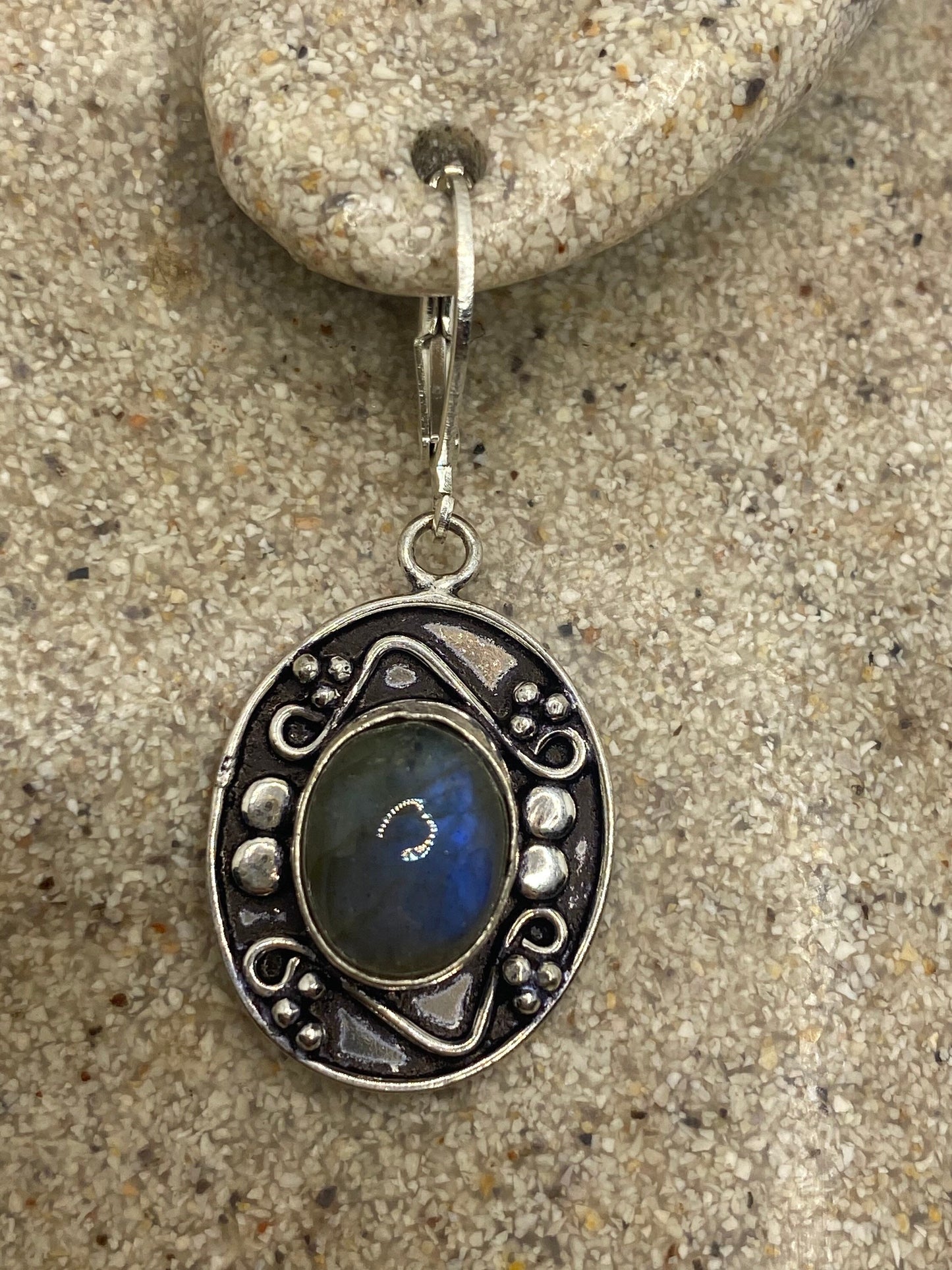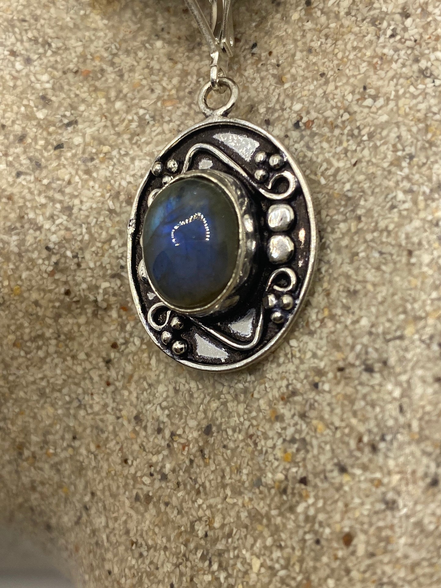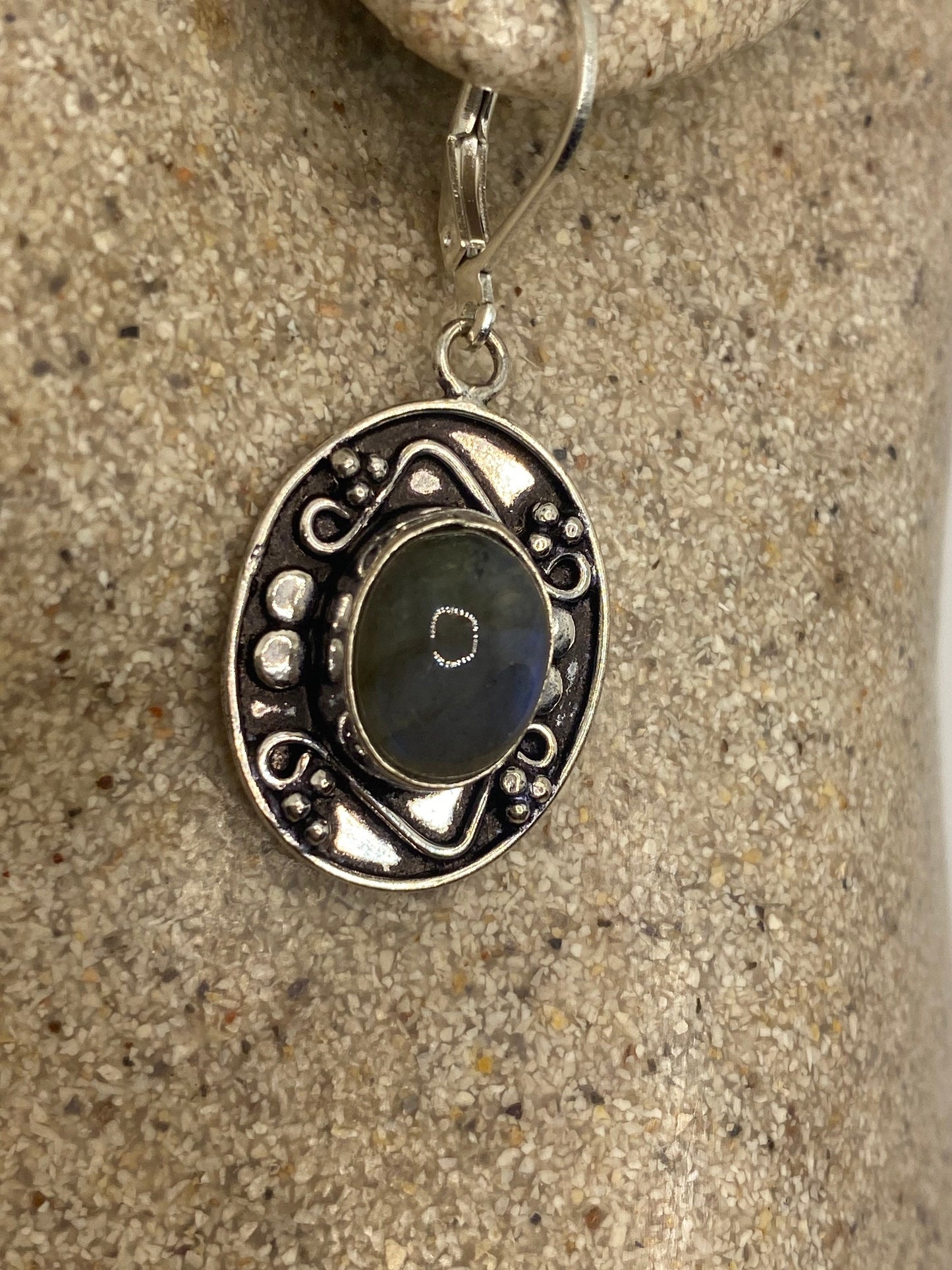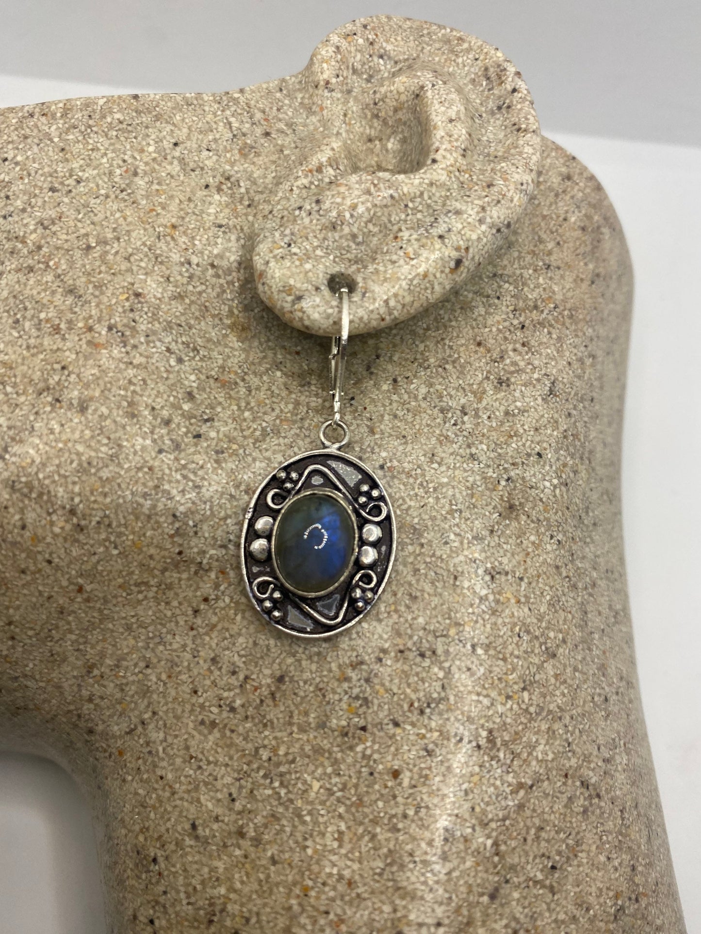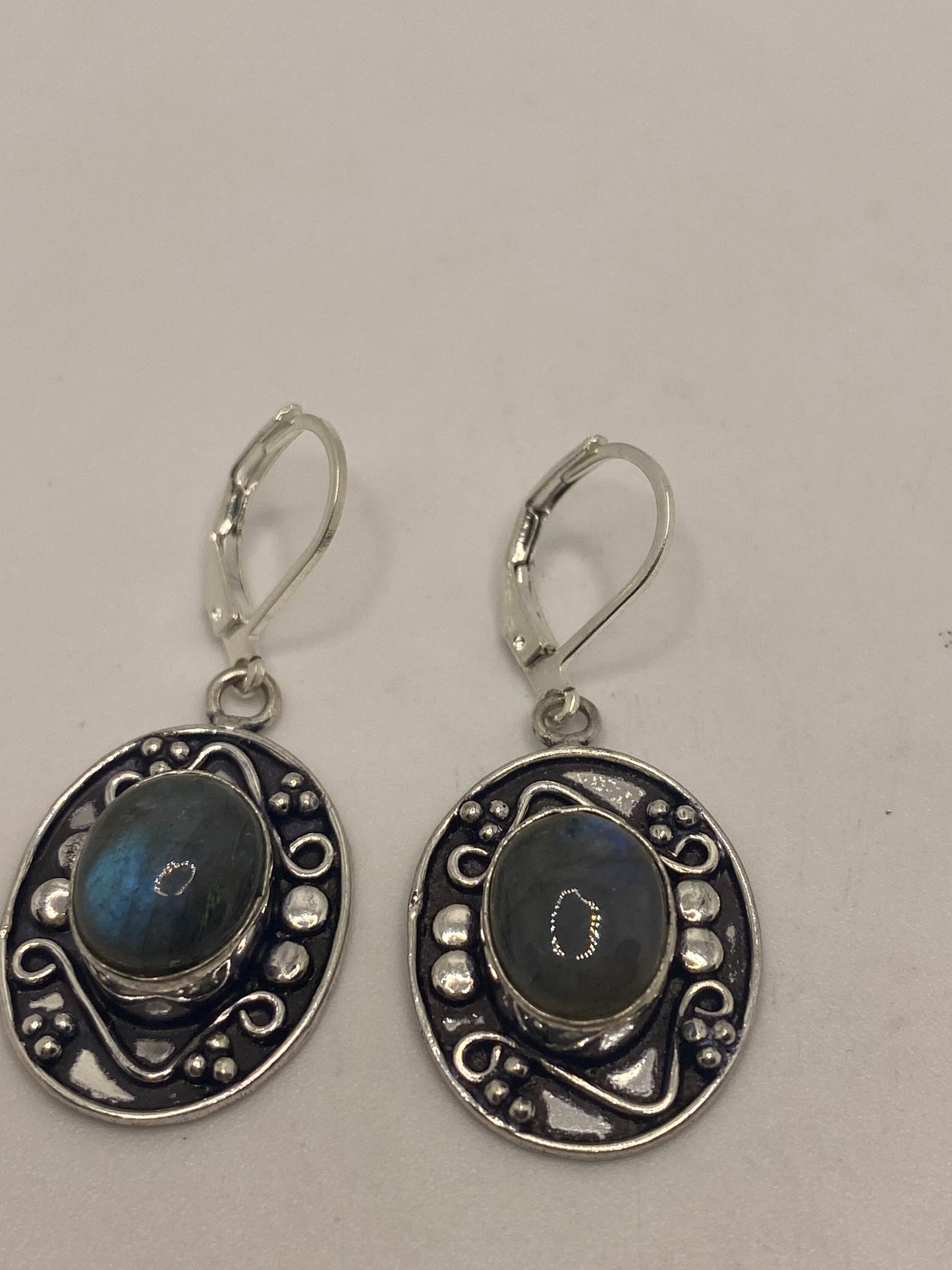 Vintage Labradorite Silver Dangle Earrings