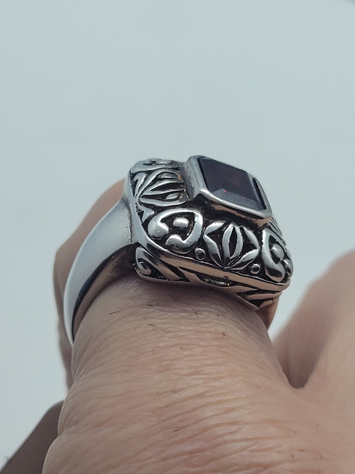 Vintage Red Garnet Ring in 925 Sterling Silver Filigree Setting